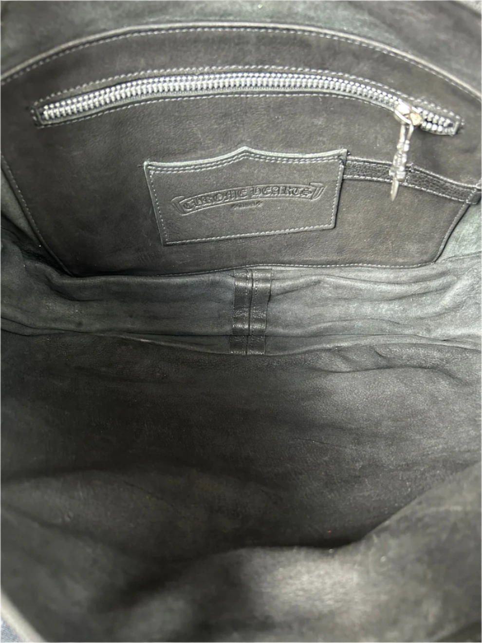 Silver Chrome Hearts hardware throughout