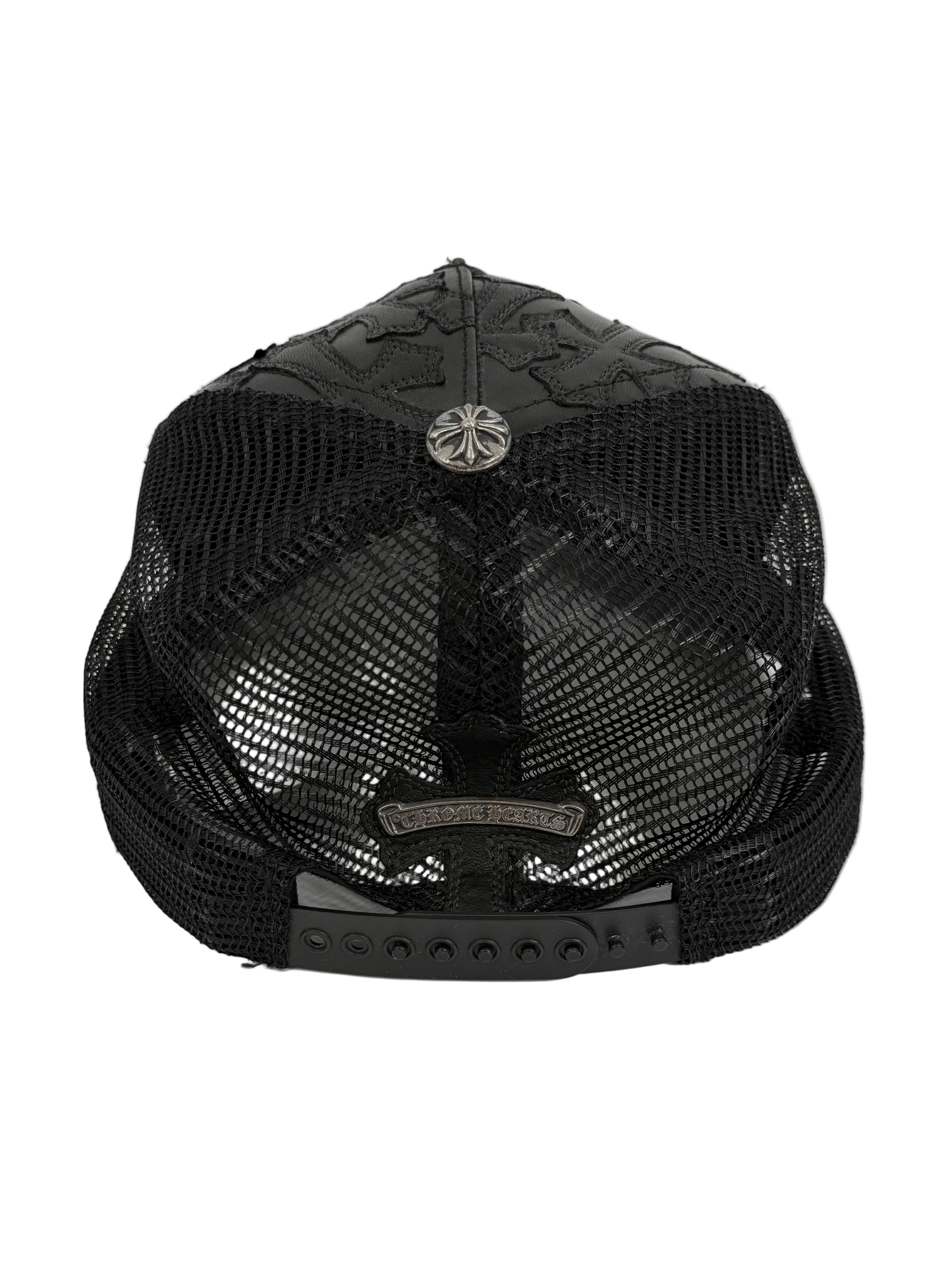 Black Leather Cemetery Cross Patch Trucker Hat
